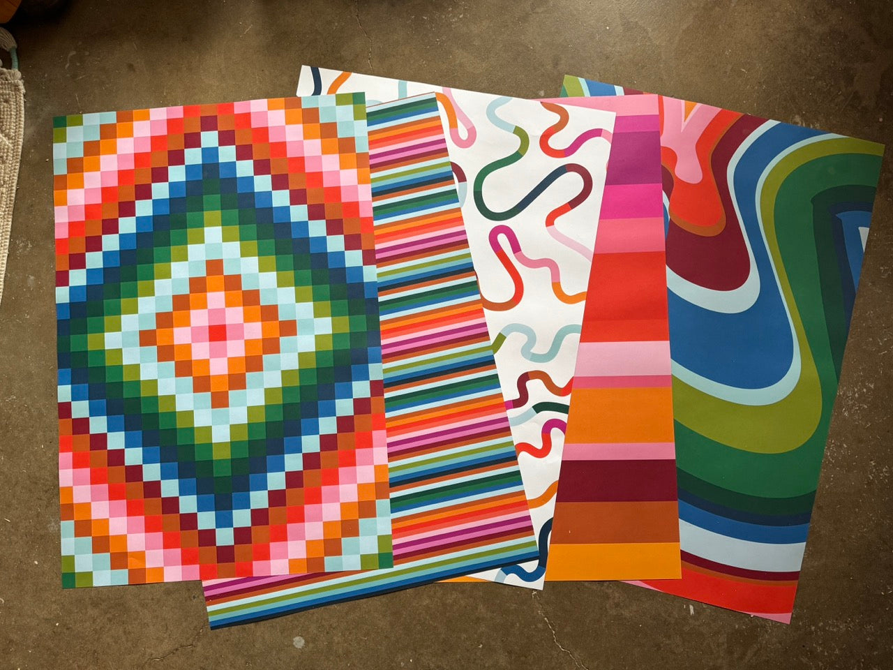 Set of 5 double sided wrapping papers. 20x29". High quality 70lb matte paper great for any occasion (or even decor projects!). All designs are in the vibrant color palette and coordinate with each other.